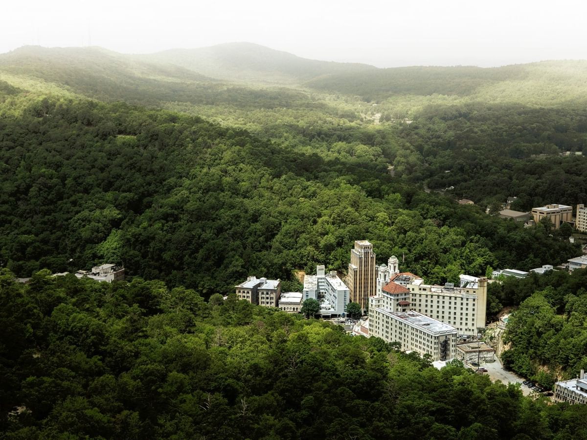 A stay at The Arlington Resort Hotel & Spa evokes a time when travel meant something special and exciting. Presiding proudly over the heart of downtown Hot Springs, Arkansas, our majestic 1920s hotel welcomes you with double towers, intricate architectural details, and a grand lobby adorned with chandeliers and crown molding. Step onto our expansive veranda, take in the rich history that surrounds you, and feel as if you’ve been transported to a bygone era.